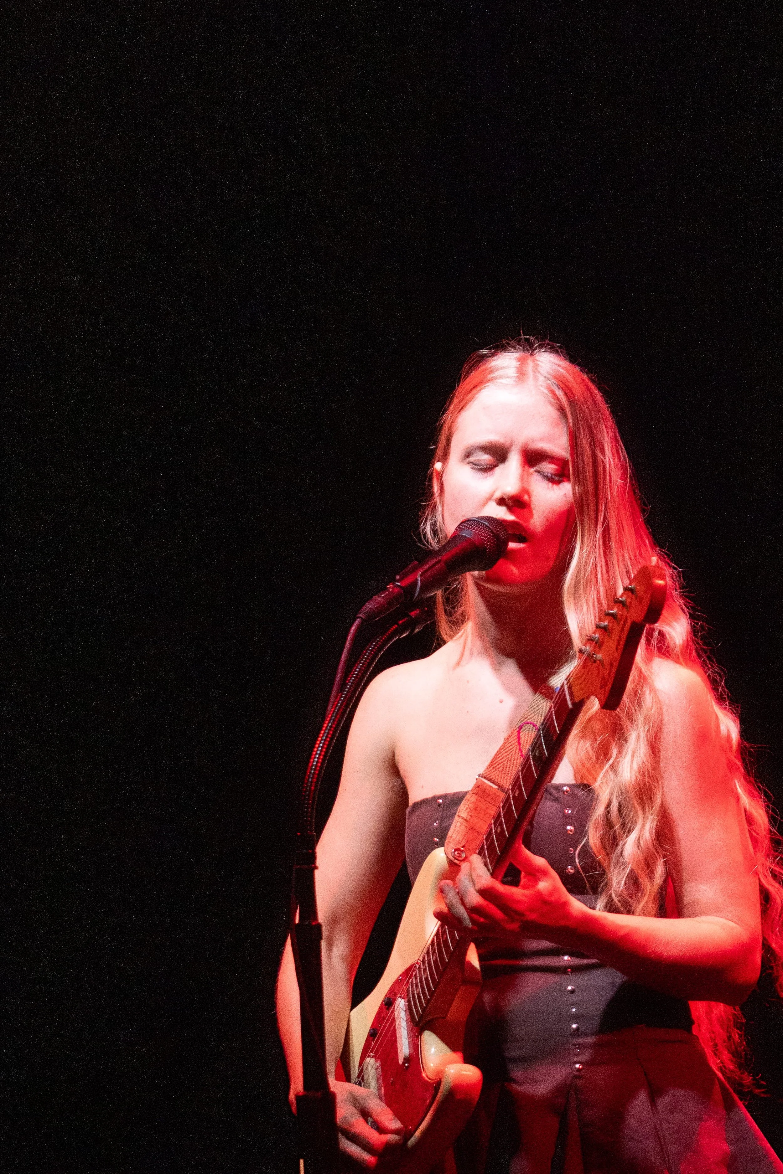 Throughout the set, she moved from instrument to instrument- starting with the guitar( both acoustic and electric), piano/keyboard, and omnicord. After her mini-solo acoustic set, John Andrews then joined her to add layered indie folk and jazz sound to her set. He proceeded to play, bass guitar and keyboard/synth which created a richer sound to her already beautiful discography. The majority of songs she played was off her new album ‘Oblivion’ while also incorporating songs from her past albums, ‘Glow’(2021) and ‘Shelter’ (2023). It wasn’t until the end of her set where she played her more popular songs such as ‘The Surface”, ‘Open My Door’ and ‘Witches’.