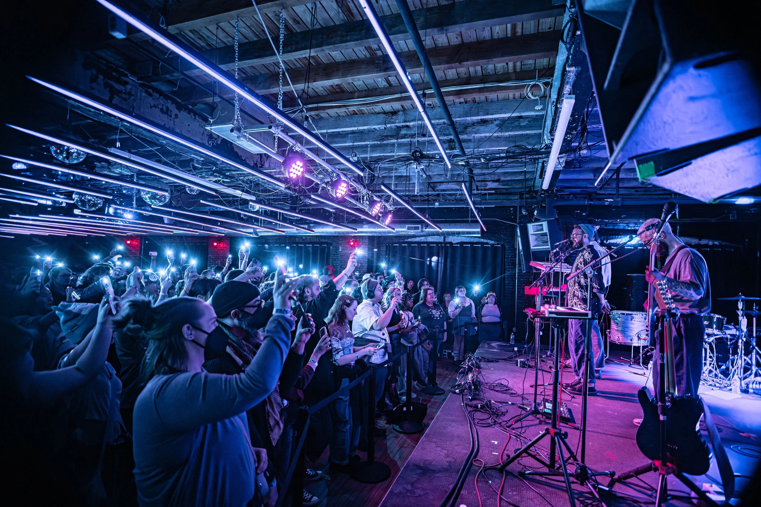 After the stage cleared, the band moved to the side of the room to meet every fan who wanted to talk. It was genuinely heartwarming. I thanked them for inviting me to the show and took a few portraits of the three core band members. Downstairs, I ran into the fan who had sung during “Factories.” Her name was Peressa, and she was with her friend Riya. When I asked her favorite song from the set, she said it had to be “Factories” since she got to sing with the band, though she also loved “We Can Build a Fire” and “Wretch.”