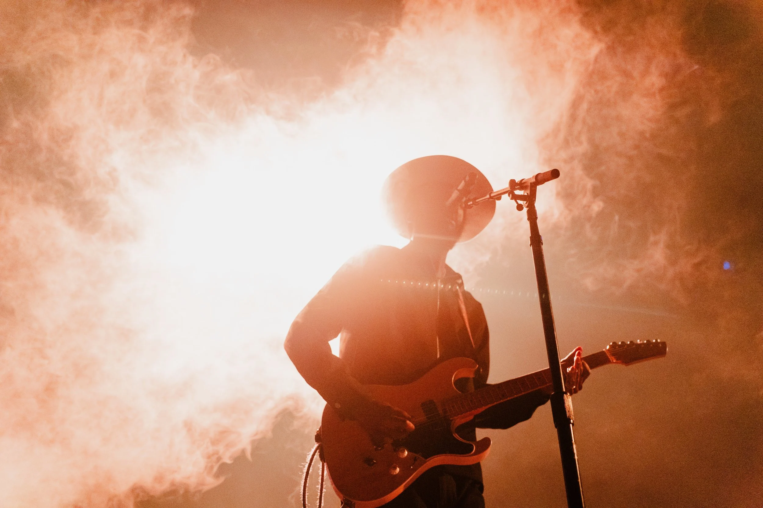 After a quick changeover, the lights dimmed, and the stage glowed in a smoky orange haze as Gary Clark Jr. stepped out to a roaring Philly crowd. He opened with a gritty, hypnotic rendition of Robert Petway’s “Catfish Blues,” setting the tone for a night that would blend blues, rock, soul, and straight-up magic.