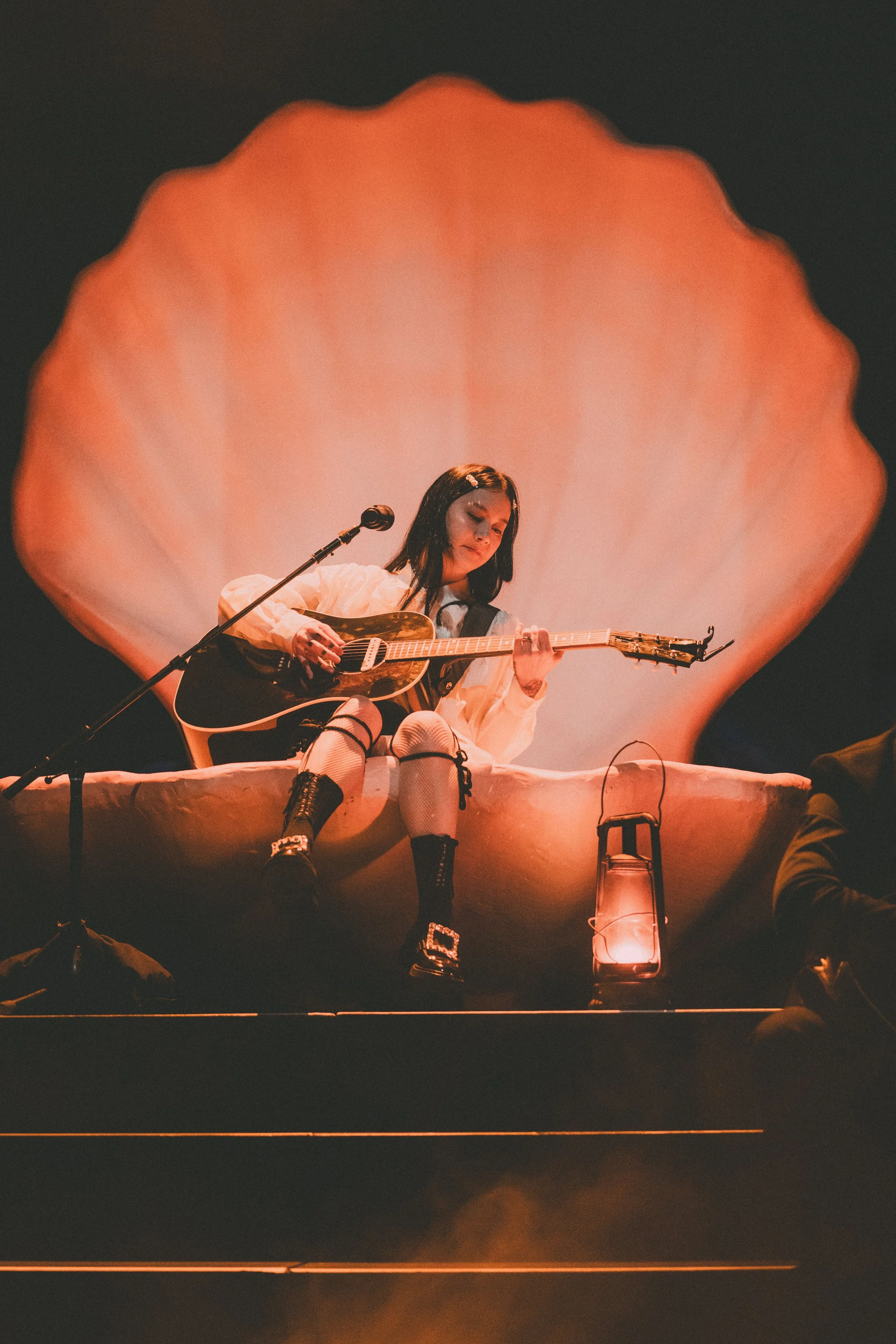 Japanese Breakfast’s return to Philly was magical! The last time I had seen Japanese breakfast was her legendary Halloween show where singer Michelle Zauner was dressed up as Gandalf so I couldn’t wait to see them again. The show opened with Ginger Root, an indie soul band from California. The singer who is also the keys player came out waved to the crowd and did a giant jump kick in the air before beginning the set. During their set you couldn’t help but notice their videographer while was feeding live onto two screens on each side of the stage in really cool psychedelic style. He brought out a really cool instrument that looked like a tiny piano that he blew into and it made a really funky sound. My favorite song they played was a song called “Giddy Up” that really got everybody moving and cheering along. Japanese breakfast came out to a pitch black stage and then Michelle came out holding a lantern and then got her acoustic guitar and sat in the giant clam shell on stage with each guitarist sitting on the bottom steps in front of her. They led off with “Here Is Someone” then “Orlando In Love” and then into “Honey Water” which broke into a huge guitar solo where Michelle lifted the guitar over her head at the end. The band played a Little Big League cover which always makes the Philly fans reminisce of the earlier days. In the middle of the set Michelle got back into the clam shell which got the crowd to erupt in cheer again. When Michelle came out and banged the gong and went into “Be Sweet” everyone had their phones out knowing this big moment in the she was coming. The band brought Ginger Root back out for “Everybody Wants To Love You” and then thanked their hometown fans for an incredible night.