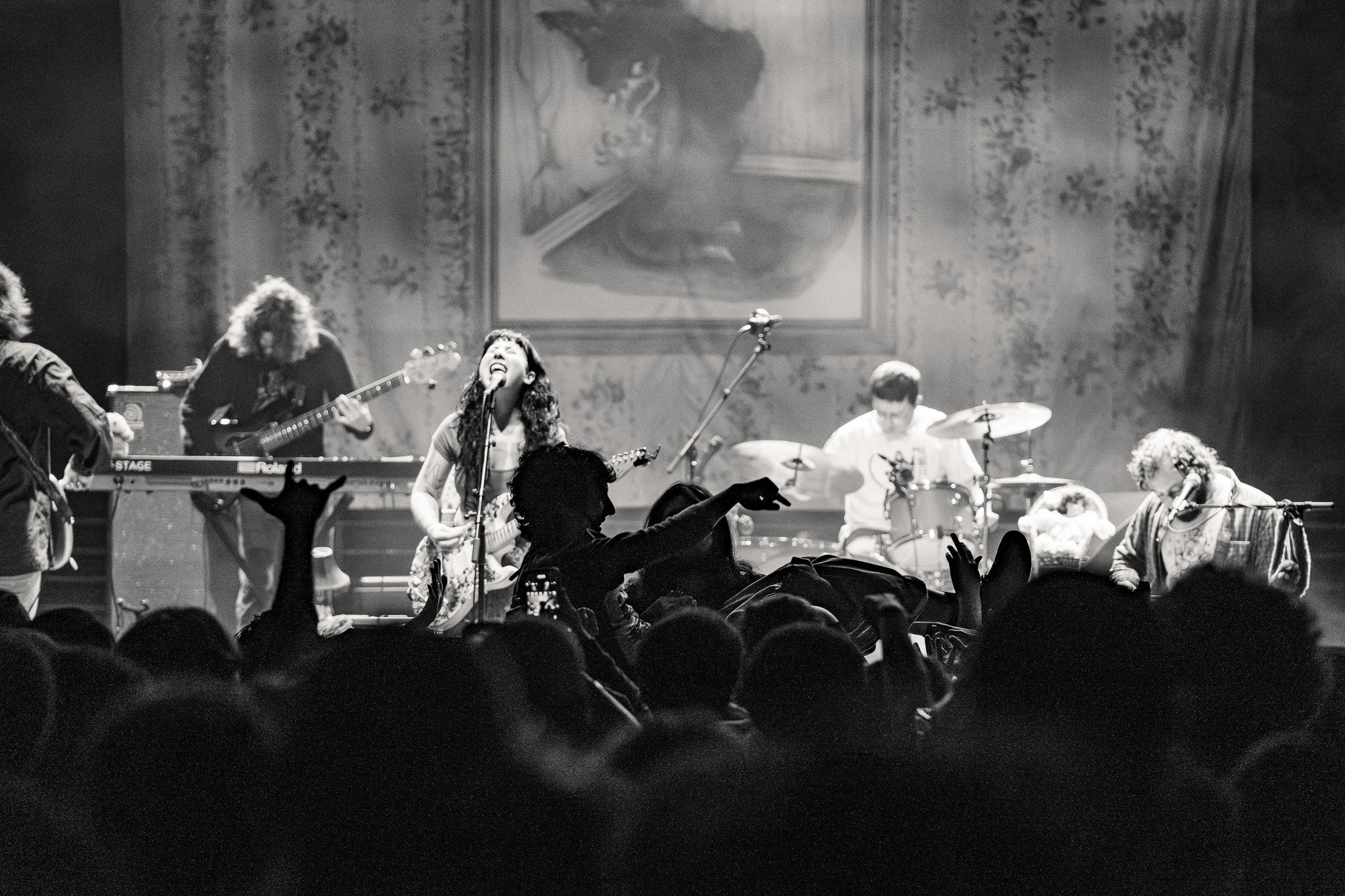 A few moments later, the lights went dim, and a wonderful night began. Starting the set with a bang, Wednesday started with “Reality TV Argument Bleeds,” and the energy was high, with the vocalist, Karly, impressing everyone with her stunning vocals. The entire band’s chemistry was amazing. Although they were spread apart on stage, you can tell that they love performing together, as everyone was in their element, almost like they were in a flow state.